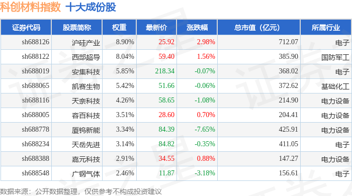 近10日内科创材料(000689)指数成份股做了调整,新纳入了4只股票,剔除了4只股票。