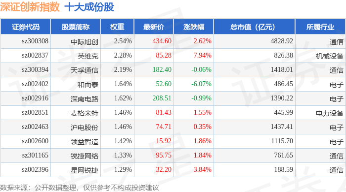 证券之星消息,9月25日,深证创新(399016)指数报收于5852.2点,涨0.88%,成交2778.23亿元,换手率4.21%。当日该指数成份股中,上涨的有56家,浪潮信息以9.99%的涨幅领涨,下跌的有44家,和而泰以6.07%的跌幅领跌。