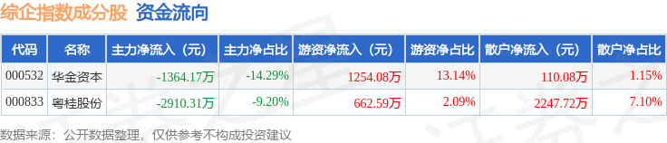 资金流向方面,综企指数(399249)成份股当日主力资金净流出合计4274.48万元,游资资金净流入合计1916.68万元,散户资金净流入合计2357.8万元。成份股资金流向详情见下表: