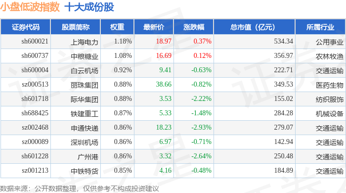 小盘低波(399408)指数十大成份股详情如下:
