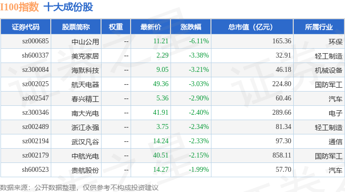 证券之星消息,9月25日,I100(399415)指数报收于7101.24点,涨0.05%,成交814.03亿元,换手率0.39%。当日该指数成份股中,上涨的有27家,亿纬锂能以6.47%的涨幅领涨,下跌的有68家,中山公用以6.11%的跌幅领跌。