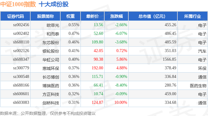 中证1000(399852)指数十大成份股详情如下: