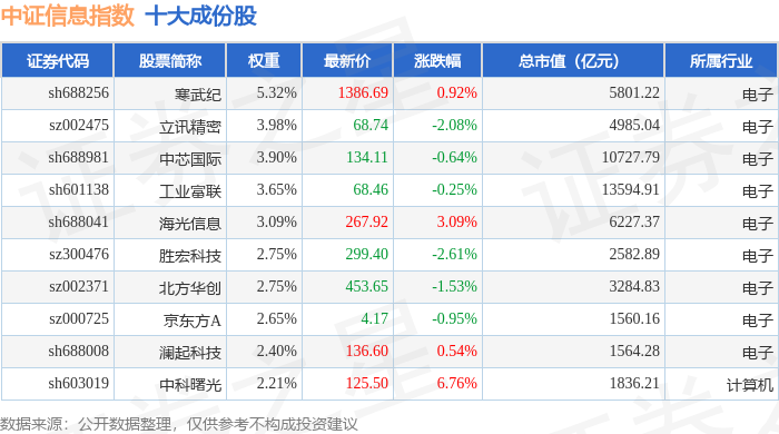 证券之星消息,9月25日,中证信息(399935)指数报收于6898.77点,涨0.95%,成交4219.21亿元,换手率3.77%。当日该指数成份股中,上涨的有76家,环旭电子以10.02%的涨幅领涨,下跌的有51家,江波龙以4.61%的跌幅领跌。