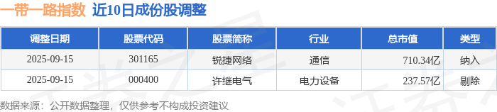 近10日内一带一路(399991)指数成份股做了调整,新纳入了1只股票,剔除了1只股票。