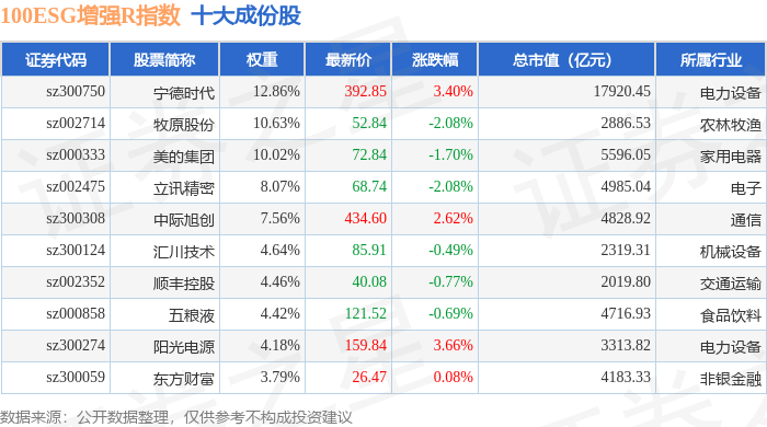 证券之星消息,9月25日,100ESG增强R(470033)指数报收于1793.06点,涨0.66%,成交1773.02亿元,换手率1.84%。当日该指数成份股中,上涨的有18家,浪潮信息以9.99%的涨幅领涨,下跌的有22家,山金国际以2.71%的跌幅领跌。