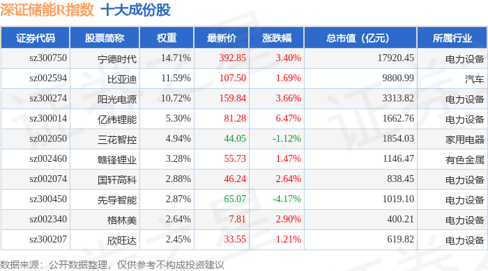 深证储能R(470036)指数十大成份股详情如下: