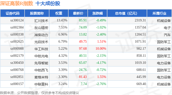 证券之星消息,9月25日,深证高装R(470037)指数报收于3401.08点,跌0.21%,成交652.63亿元,换手率3.03%。当日该指数成份股中,上涨的有14家,华工科技以10.0%的涨幅领涨,下跌的有36家,先导智能以4.17%的跌幅领跌。