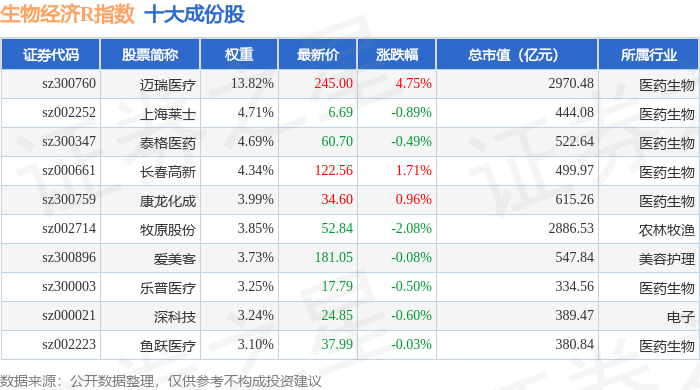 生物经济R(470038)指数十大成份股详情如下: