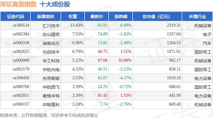 证券之星消息,9月25日,深证高装(970037)指数报收于3017.46点,跌0.21%,成交652.63亿元,换手率3.03%。当日该指数成份股中,上涨的有14家,华工科技以10.0%的涨幅领涨,下跌的有36家,先导智能以4.17%的跌幅领跌。