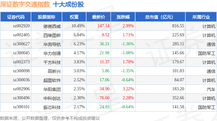资金流向方面,深证数字交通(970049)指数成份股当日主力资金净流出合计4.55亿元,游资资金净流出合计5495.15万元,散户资金净流入合计5.1亿元。成份股资金流向详情见下表: