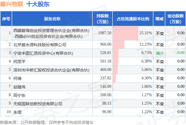 根据碧兴物联2025年中报公布的十大股东详情如下: