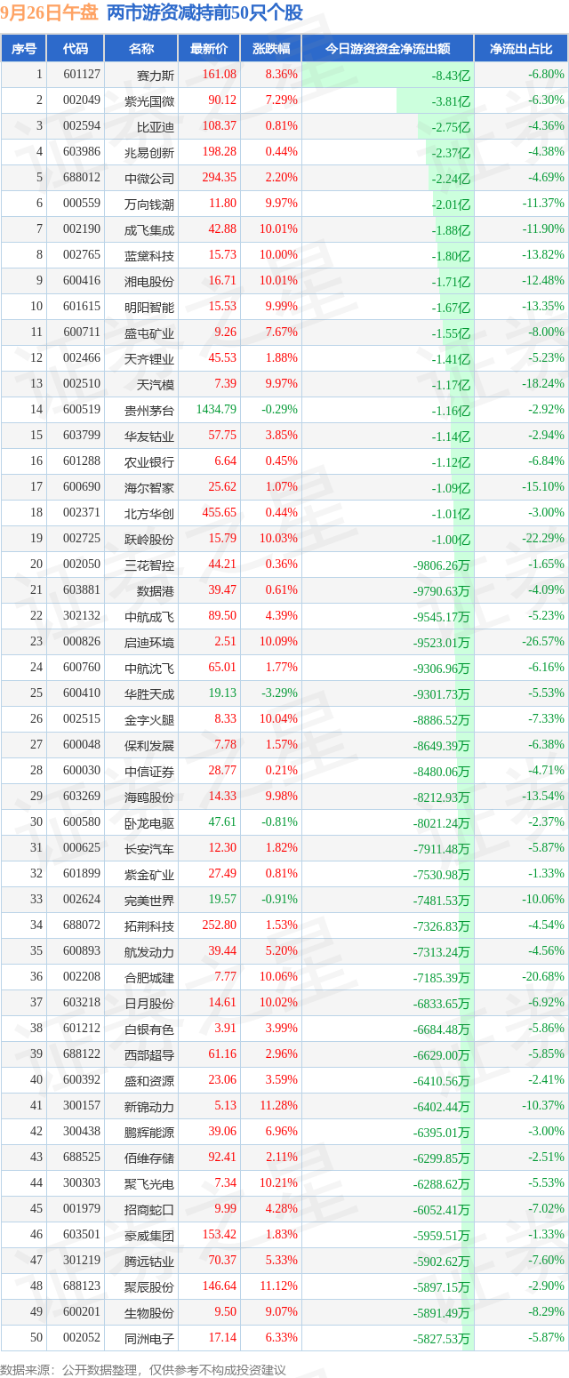 两市游资减持最多的前十只个股为: