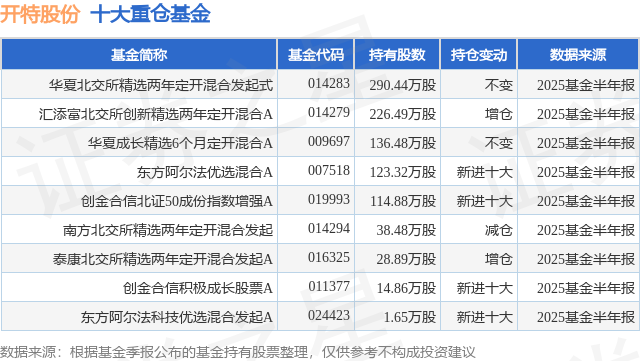 根据2025基金半年报公募基金重仓股数据,重仓该股的公募基金共9家,其中持有数量最多的公募基金为华夏基金的华夏北交所精选两年定开混合发起式。华夏北交所精选两年定开混合发起式目前规模为9.06亿元,最新净值2.6455(9月25日),较上一交易日下跌0.71%,近一年上涨241.97%。该公募基金现任基金经理为顾鑫峰。顾鑫峰在任的基金产品包括:华夏成长精选6个月定开混合A,管理时间为2020年6月12日至今,期间收益率为64.41%;华夏核心制造混合A,管理时间为2024年12月23日至今,期间收益率为49.8%。