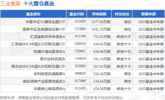 重仓工业富联的前十大公募基金请见下表: