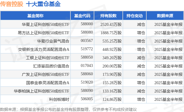 根据2025基金半年报公募基金重仓股数据,重仓该股的公募基金共126家,其中持有数量最多的公募基金为华夏基金的华夏上证科创板50成份ETF。华夏上证科创板50成份ETF目前规模为833.43亿元,最新净值1.5478(9月25日),较上一交易日上涨1.24%,近一年上涨121.18%。该公募基金现任基金经理为荣膺 赵宗庭。荣膺在任的基金产品包括:华夏中证500ETF联接A,管理时间为2016年10月20日至今,期间收益率为27.95%;华夏中证500ETF,管理时间为2016年10月20日至今,期间收益率为29.65%;华夏中证央企ETF,管理时间为2018年10月19日至今,期间收益率为48.16%;华夏创业板价值ETF,管理时间为2019年6月14日至今,期间收益率为81.98%。赵宗庭在任的基金产品包括:华夏沪深300ETF联接A,管理时间为2017年4月17日至今,期间收益率为52.92%;华夏沪深300ETF,管理时间为2017年4月17日至今,期间收益率为54.38%;华夏野村日经225ETF,管理时间为2019年6月12日至今,期间收益率为69.68%;华夏国证半导体芯片ETF,管理时间为2020年1月20日至今,期间收益率为84.57%。