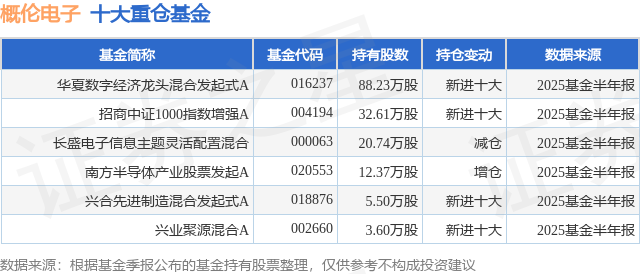 根据2025基金半年报公募基金重仓股数据,重仓该股的公募基金共6家,其中持有数量最多的公募基金为华夏基金的华夏数字经济龙头混合发起式A。华夏数字经济龙头混合发起式A目前规模为4.58亿元,最新净值1.4499(9月25日),较上一交易日上涨0.14%,近一年上涨104.24%。该公募基金现任基金经理为张景松。张景松在任的基金产品包括:华夏科技龙头两年持有混合,管理时间为2025年3月3日至今,期间收益率为28.47%。