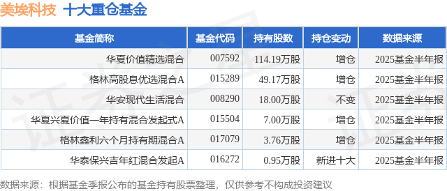 根据2025基金半年报公募基金重仓股数据,重仓该股的公募基金共6家,其中持有数量最多的公募基金为华夏基金的华夏价值精选混合。华夏价值精选混合目前规模为7.79亿元,最新净值1.9491(9月25日),较上一交易日上涨0.01%,近一年上涨73.53%。该公募基金现任基金经理为朱熠。朱熠在任的基金产品包括:华夏兴夏价值一年持有混合发起式A,管理时间为2023年5月5日至今,期间收益率为47.83%;华夏红利价值混合A,管理时间为2025年8月12日至今,期间收益率为3.29%。