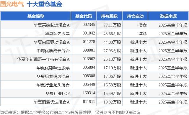 根据2025基金半年报公募基金重仓股数据,重仓该股的公募基金共28家,其中持有数量最多的公募基金为华夏基金的华夏高端制造混合A。华夏高端制造混合A目前规模为8.99亿元,最新净值1.547(9月25日),较上一交易日上涨0.26%,近一年上涨46.22%。该公募基金现任基金经理为吴昊。