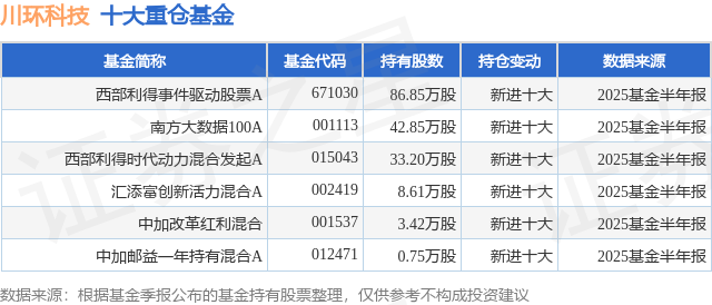 根据2025基金半年报公募基金重仓股数据,重仓该股的公募基金共6家,其中持有数量最多的公募基金为西部利得基金的西部利得事件驱动股票A。西部利得事件驱动股票A目前规模为4.75亿元,最新净值4.0054(9月25日),较上一交易日上涨0.34%,近一年上涨130.86%。该公募基金现任基金经理为张昌平。张昌平在任的基金产品包括:西部利得时代动力混合发起A,管理时间为2022年5月31日至今,期间收益率为62.29%;西部利得新富混合A,管理时间为2025年8月15日至今,期间收益率为2.93%;西部利得CES芯片指数增强A,管理时间为2025年9月6日至今,期间收益率为17.96%。