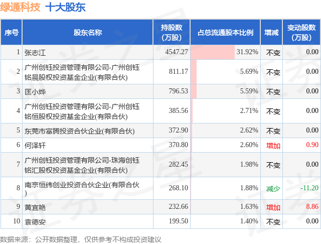 根据绿通科技2025年中报公布的十大股东详情如下: