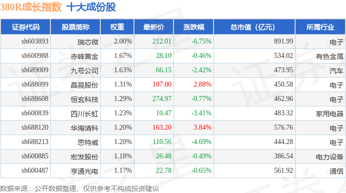 证券之星消息,9月26日,380R成长(000119)指数报收于4399.29点,跌0.96%,成交1892.74亿元,换手率2.21%。当日该指数成份股中,上涨的有89家,晶合集成以16.63%的涨幅领涨,下跌的有185家,博瑞医药以12.57%的跌幅领跌。