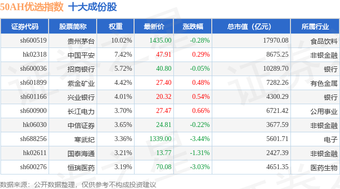 50AH优选(000170)指数十大成份股详情如下: