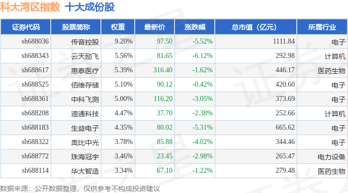 科大湾区(000697)指数十大成份股详情如下: