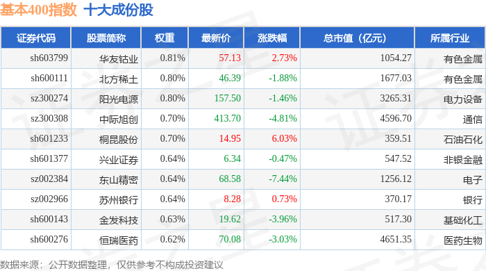 基本400(000966)指数十大成份股详情如下:
