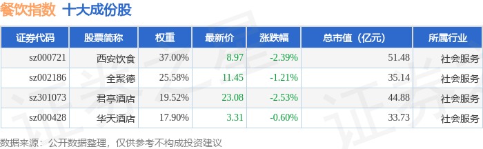 餐饮指数(399238)十大成份股详情如下: