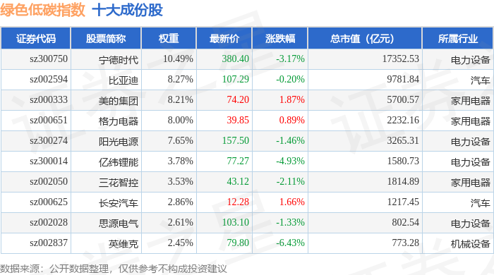 资金流向方面,绿色低碳(399258)指数成份股当日主力资金净流出合计51.83亿元,游资资金净流入合计14.98亿元,散户资金净流入合计36.86亿元。成份股资金流向详情见下表: