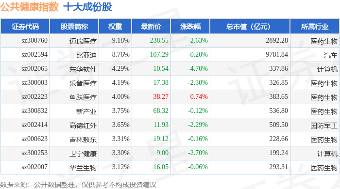 资金流向方面,公共健康(399277)指数成份股当日主力资金净流出合计3.94亿元,游资资金净流出合计1.39亿元,散户资金净流入合计5.33亿元。成份股资金流向详情见下表:
