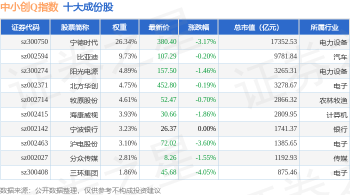 中小创Q(399294)指数十大成份股详情如下: