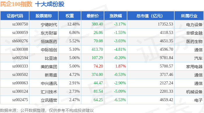 资金流向方面,民企100(399362)指数成份股当日主力资金净流出合计170.32亿元,游资资金净流入合计52.04亿元,散户资金净流入合计118.28亿元。成份股资金流向详情见下表:
