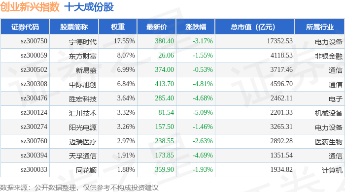 资金流向方面,创业新兴(399643)指数成份股当日主力资金净流出合计147.4亿元,游资资金净流入合计53.27亿元,散户资金净流入合计94.13亿元。成份股资金流向详情见下表: