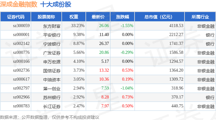 证券之星消息,9月26日,深成金融(399686)指数报收于2219.27点,跌0.53%,成交223.66亿元,换手率0.97%。当日该指数成份股中,上涨的有10家,越秀资本以4.75%的涨幅领涨,下跌的有15家,东方财富以1.55%的跌幅领跌。