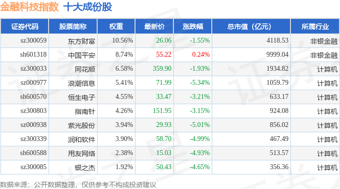 金融科技(399699)指数十大成份股详情如下: