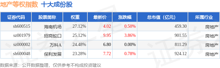 证券之星消息,9月26日,地产等权(399983)指数报收于2224.99点,涨1.32%,成交42.17亿元,换手率1.43%。当日该指数成份股中,上涨的有3家,招商蛇口以3.86%的涨幅领涨。