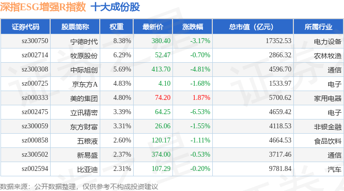 深指ESG增强R(470032)指数十大成份股详情如下: