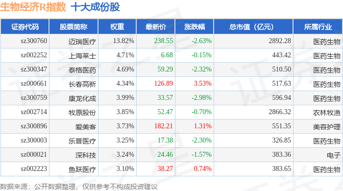 资金流向方面,生物经济R(470038)指数成份股当日主力资金净流出合计10.74亿元,游资资金净流入合计5.89亿元,散户资金净流入合计4.85亿元。成份股资金流向详情见下表: