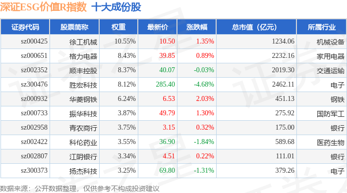 深证ESG价值R(470061)指数十大成份股详情如下: