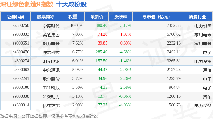 深证绿色制造R(470069)指数十大成份股详情如下: