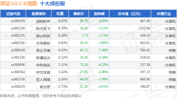 深证AIGCR(470075)指数十大成份股详情如下:
