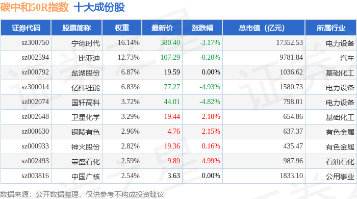 碳中和50R(480021)指数十大成份股详情如下: