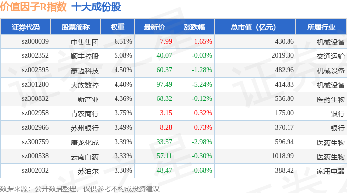 价值因子R(480056)指数十大成份股详情如下:
