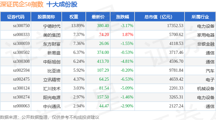 深证民企50(970057)指数十大成份股详情如下: