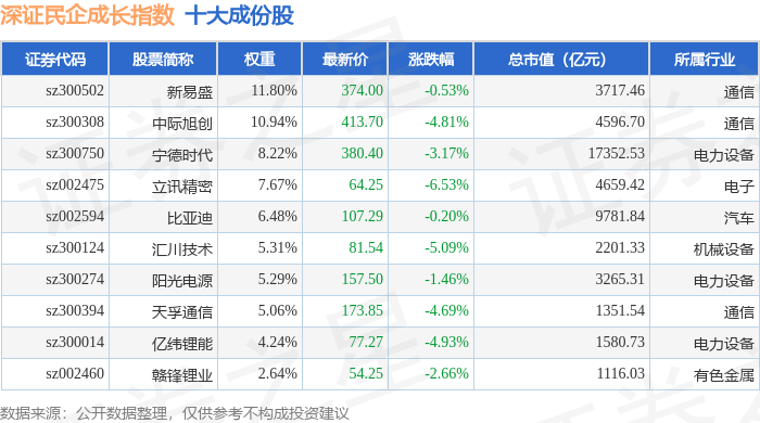深证民企成长(970071)指数十大成份股详情如下: