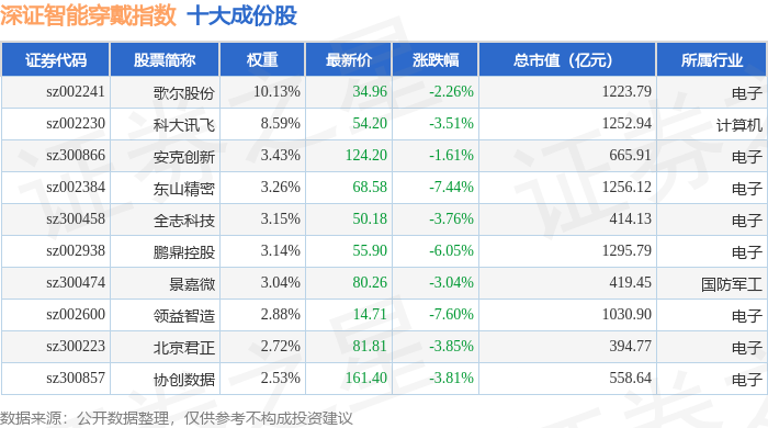 深证智能穿戴(970074)指数十大成份股详情如下: