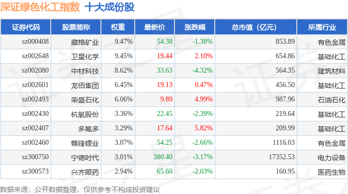 证券之星消息,9月26日,深证绿色化工(970076)指数报收于1544.12点,跌0.18%,成交488.27亿元,换手率2.48%。当日该指数成份股中,上涨的有23家,恒逸石化以6.89%的涨幅领涨,下跌的有27家,盟固利以6.91%的跌幅领跌。