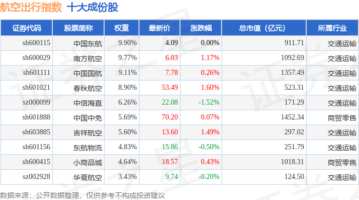 资金流向方面,航空出行(980059)指数成份股当日主力资金净流出合计9.64亿元,游资资金净流入合计1.25亿元,散户资金净流入合计8.39亿元。成份股资金流向详情见下表: