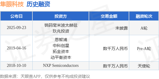 证券之星消息,根据天眼查APP于9月23日公布的信息整理,南京隼眼电子科技有限公司A轮融资,融资额未披露,参与投资的机构包括锐码毫米波太赫兹,玖兆投资。